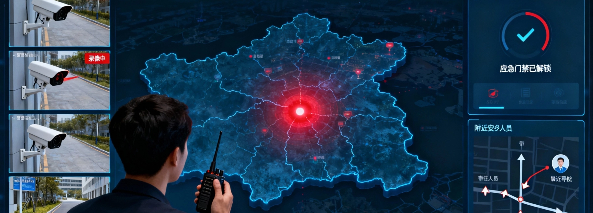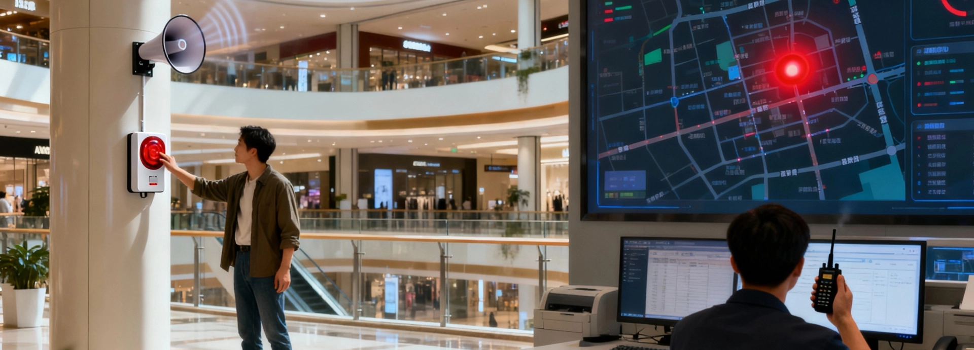 报警触达安保中心(派出所),同步联动广播、视频、门禁,监控通知就近安保和其它商户。兼顾日常广播与设备自检,兼容旧设备,降本提效,适用于综合体、步行街等商圈,构建安防闭环。