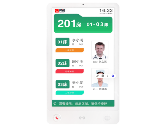 Supports receiving message notifications and conducting intercom communication, enabling real-time information exchange between medical staff and between medical staff and patients, enhancing communication convenience.