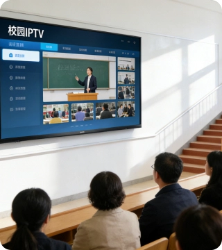 学校 IPTV 解决方案基于校园现有网络架构,通过 IP 传输技术构建集教学、管理、文化传播于一体的多媒体平台。系统支持多终端接入,覆盖教室大屏、宿舍电视、教师办公设备及学生移动终端,实现资源高效触达。