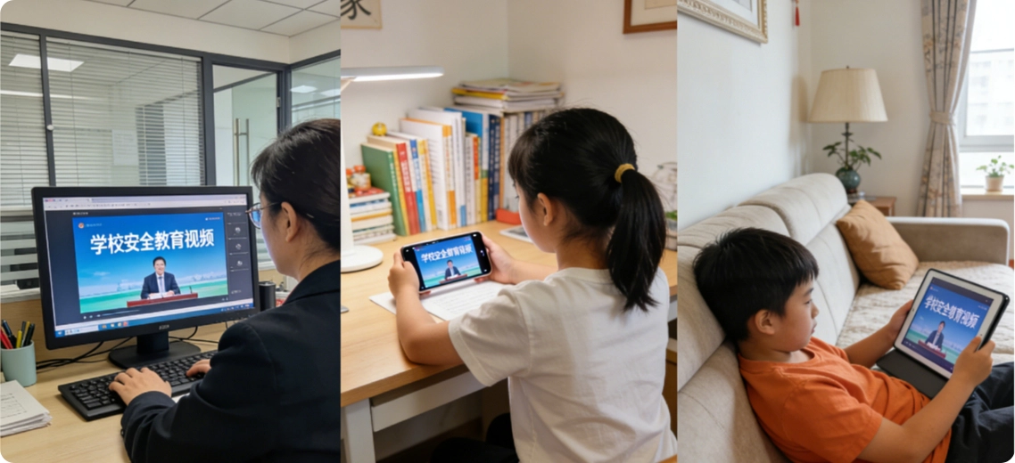 核心功能包括:教学场景中提供课堂直播、精品课录播回放、教学资源点播;管理场景支持校园通知推送、会议直播 / 点播;文化场景涵盖校园新闻、文体活动直播、纪录片等内容。系统具备分级权限管理,确保内容定向推送,并通过内容审核机制保障信息安全。可无缝对接智慧校园系统,支持按需扩展互动课堂、在线答疑等功能,助力教学效率提升与校园文化建设。
