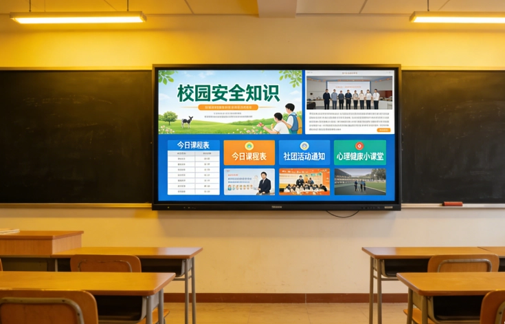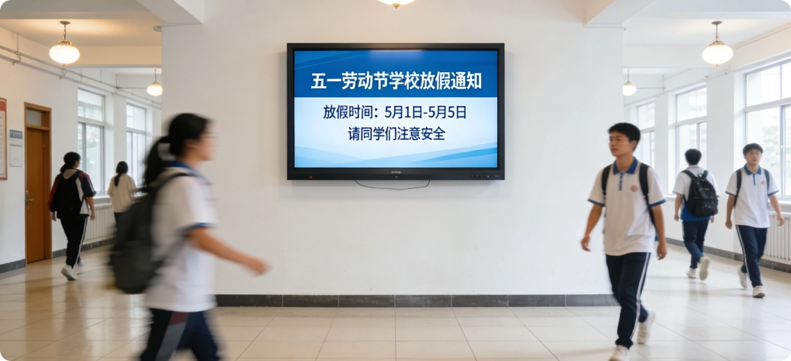 2.针对重要活动,如开学典礼、运动会等,支持实时直播到全校屏幕,让师生同步参与;借助插播功能,紧急通知可秒级触达所有终端,保障信息高效传递。
