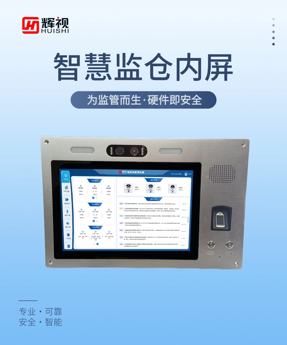 智慧监管,一屏掌控未来!辉视根据客户和市场需求,自主研发以创新之力推出最新一代智慧监仓内屏,集身份核验、应急通信、签到打卡、AI行识别、系统集成于一体,为监管场所打造高效、安全、智能的数字化解决方案。