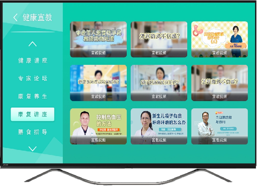 在智慧医疗环境中,健康教育同样是医院服务的重要组成部分。辉视医院IPTV系统内置健康教育内容库,涵盖疾病预防、康复护理以及健康生活方式等多个方面,并可根据科室进行分类展示。