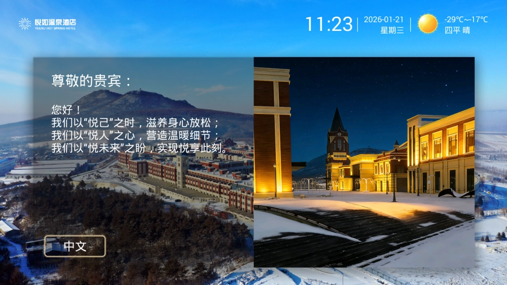 在悦如,客房电视不再是冰冷的播放器,而更像一位安静的“房间管家”。它不打扰,却始终在需要时出现,将旅途中的信息、服务与节奏,悄然融入每一次停留。