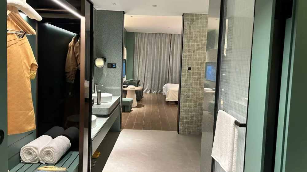 一屏享生活-服务即消费:你泡完温泉,想知道晚餐有什么特色,或者康养中心是否还有空位。你无需打电话,也无需翻阅厚厚的宣传册。躺在床上,通过客房电视的IPTV系统,扫码即可一键了解酒店餐饮、休闲娱乐与度假区的生活节奏。把旅途过成生活,让度假真正变成一种生活状态。