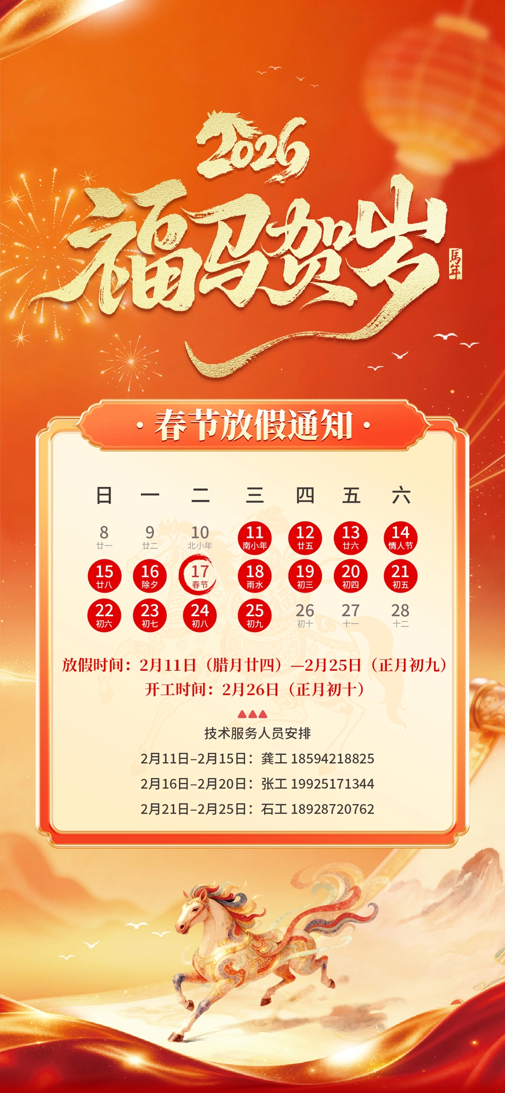 春节将至,衷心感谢您过去一年对辉视科技的信任与支持。根据国家节假日安排及公司运营计划,现将2026年春节假期安排通知如下: